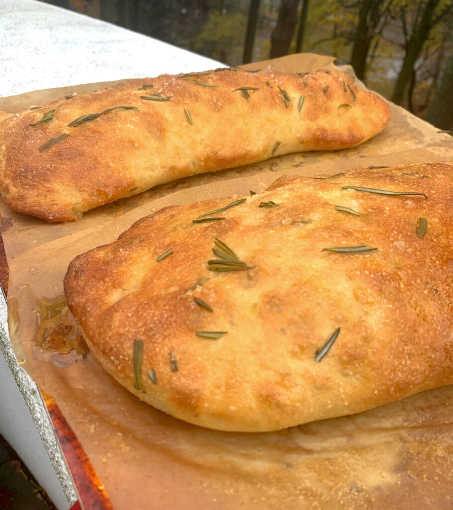 Allow loaves to cool before eating. We love to use it for appetizers, as a table bread, for sandwiches, or just rip hunks off and eat it on the go. Store wrapped in parchment paper, or an unsealed plastic bag so that the salt doesn’t make the bread wet. Salty ROC Bread is best the day of, but reheats well in the oven at about 400 degrees and fantastic reheated on the grill.